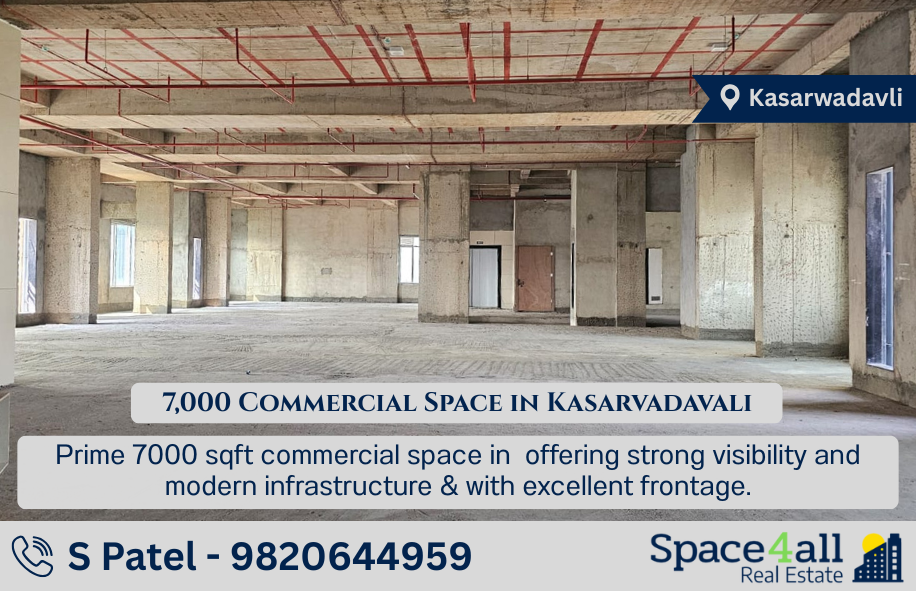 If you are searching for a 7000 sqft office space in Kasarvadavali, this newly constructed commercial property on Ghodbunder Road offers strong visibility, flexible planning, and modern infrastructure. It is ideal for businesses that want a premium and well-connected office location.
